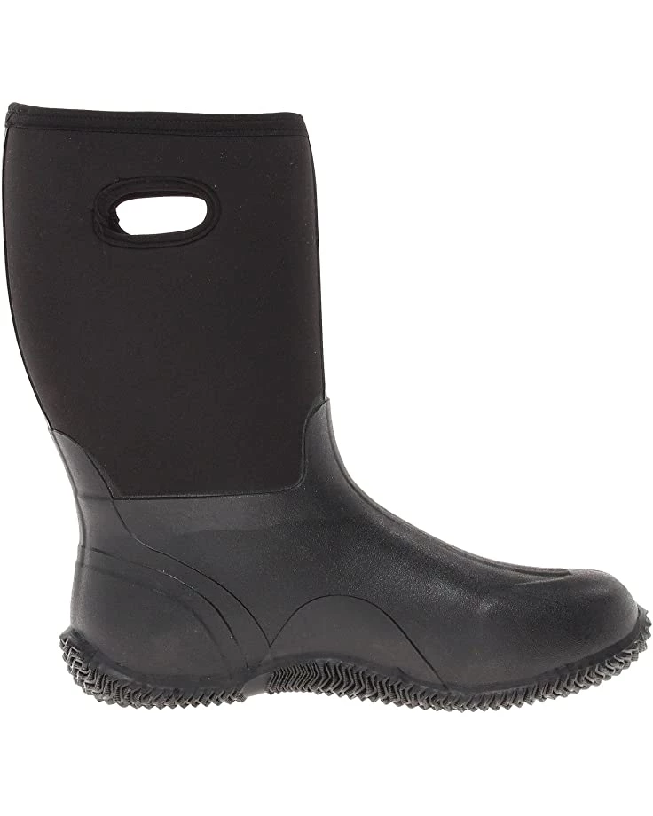 I normally wear size 10.5 – 11 womens, and after reading the reviews I ordered a men’s size 8 and they fit perfectly with my thicker hiking socks! I bought these for tromping around the ranch in the mud and puddles, and they are my new favorite boot. Mud sloughs off as you walk around so you can still get traction and doesn’t build up on the bottom so you don’t feel three inches taller and five pounds of mud heavier. My husband complains about his muck boots causing blisters on the back of his ankle, but I had no problems whatsoever. Super easy to get on with the handles too!! 6″ thick mud puddle and four hours of tromping approved!