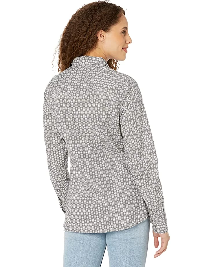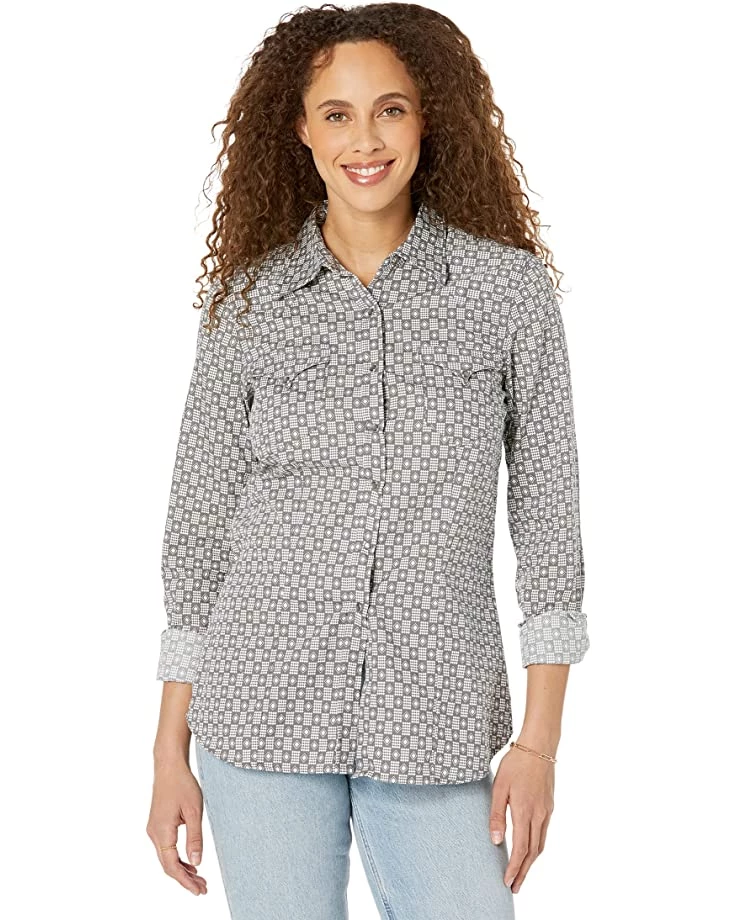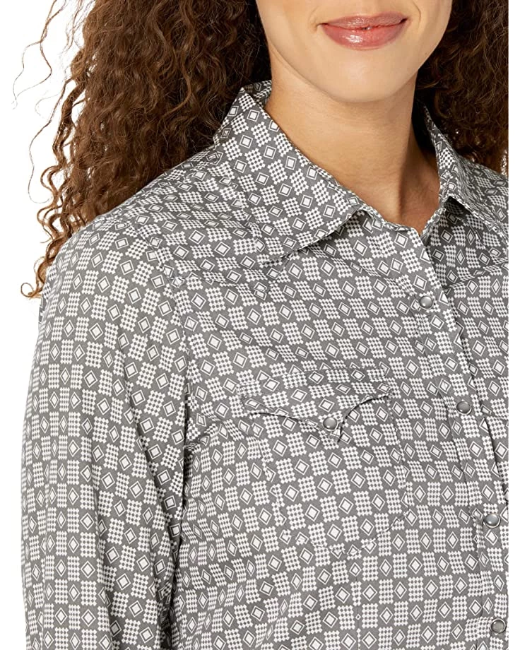 - Look crisp and smart wearing the Roper® Grey Checked Diamonds Print Western Blouse w/ Snaps.