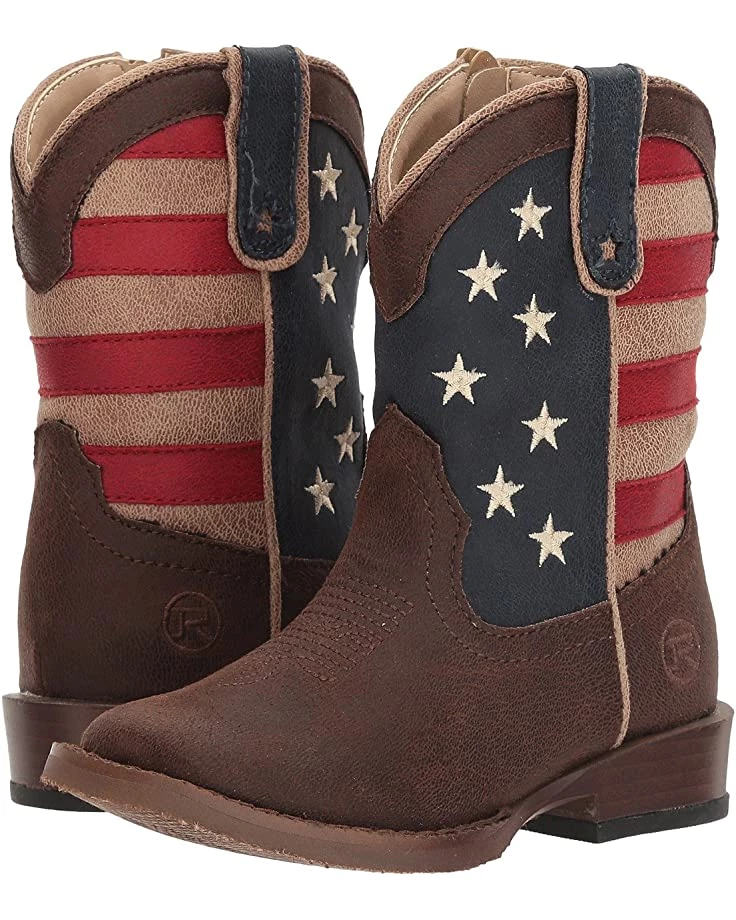- They’re never too young to be a proud of the red, white, and blue in the Roper® Kids American Patriot cowboy boot!