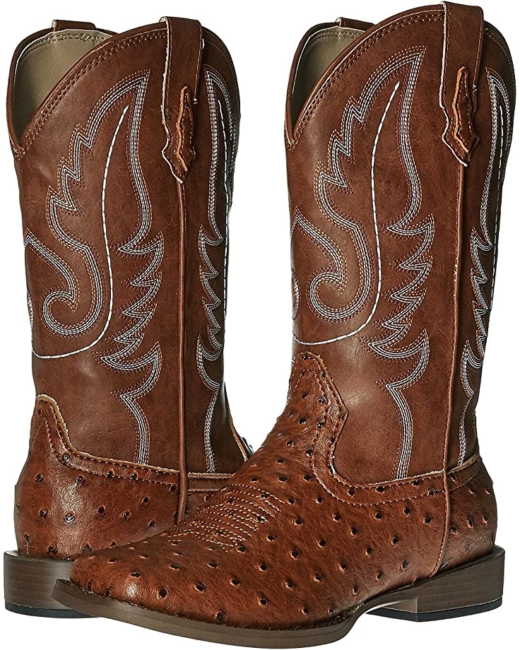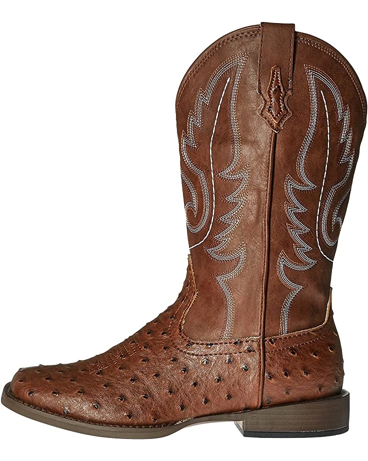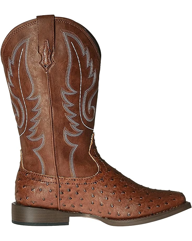 - The fun look of the Roper® Kids Faux-Leather Ostrich Print boot will be loved by cowboys and cowgirls alike!