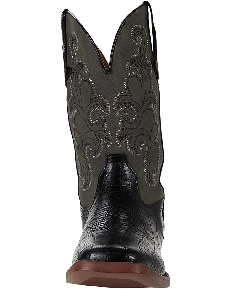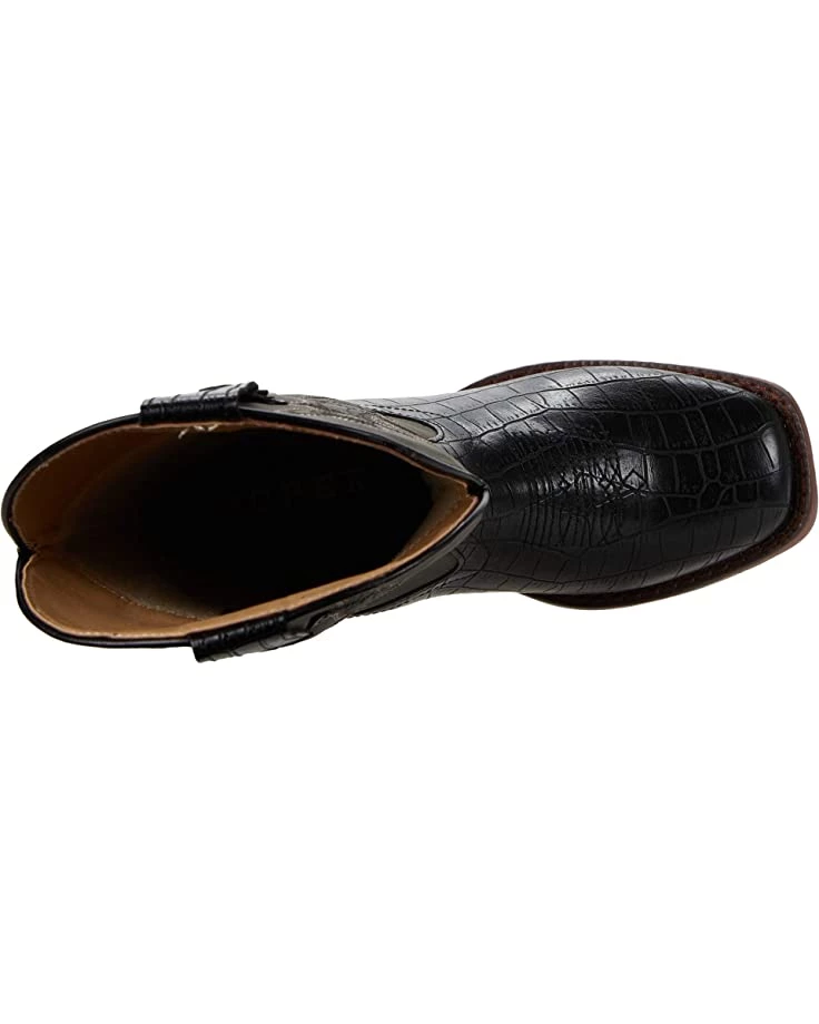 - Faux alligator skin on upper with decorative embroidery on boot neck.
