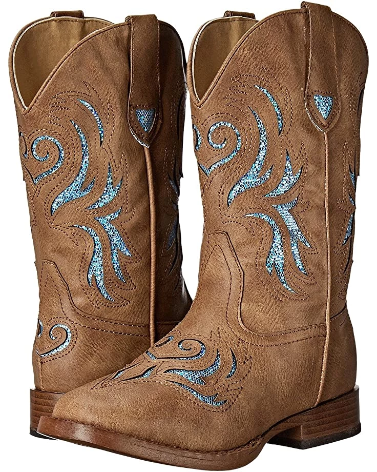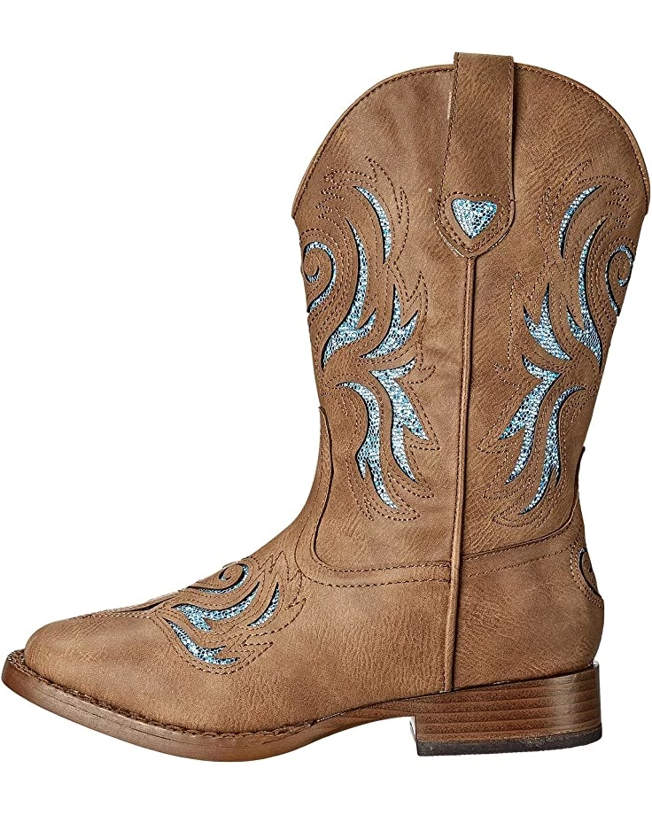 - They’ll take a second look at the hidden sparkle of the Roper® Kids Glitter Breeze Square Toe cowboy boot. This boot dons a simple look with bright peek-a-boo colors from the inside to finish off a true country gal’s style!