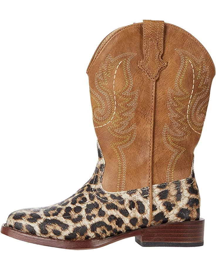 - She’ll own the show in these eye-catching animal patterned Roper® Kids Glitter Leopard western boots.