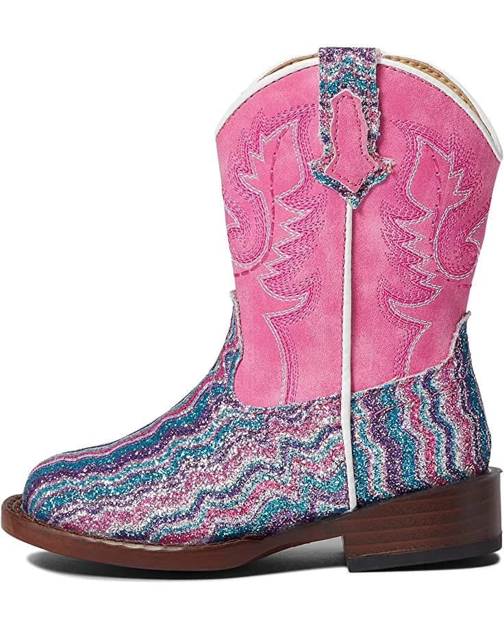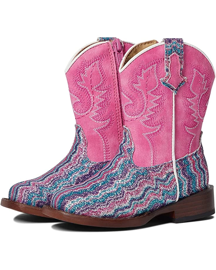 - Complement your little one’s style by adding the Roper® Glitter Waves boots to their ensemble.