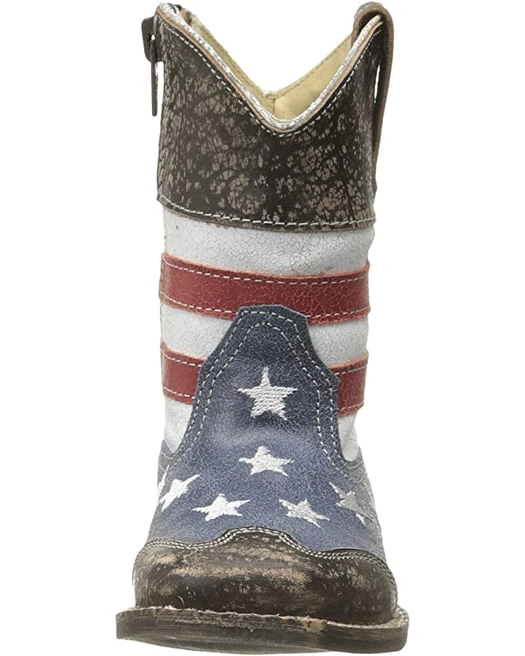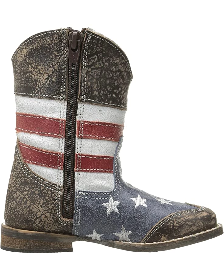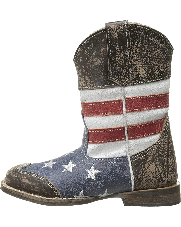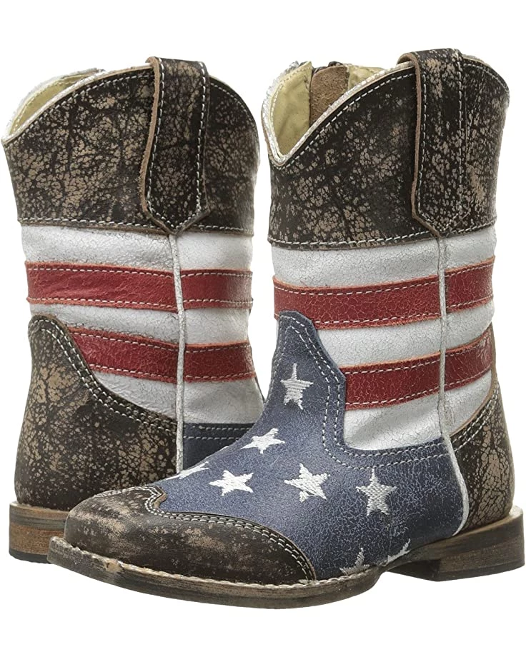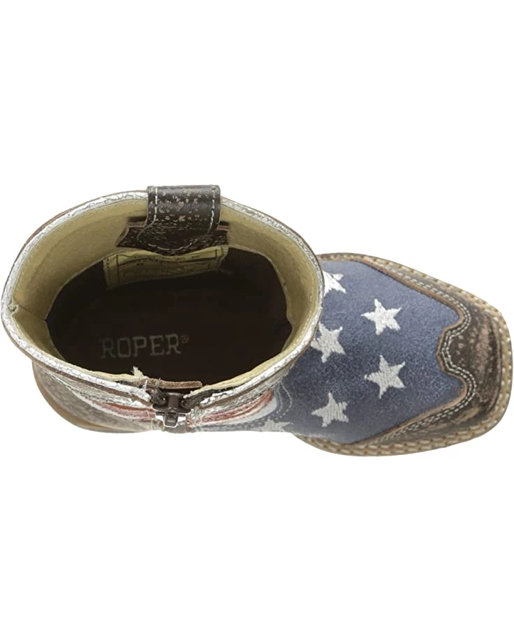 - Your little babe is a proud American with these Roper® Kids Sanded Leather Upper cowboy boots!