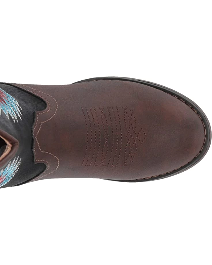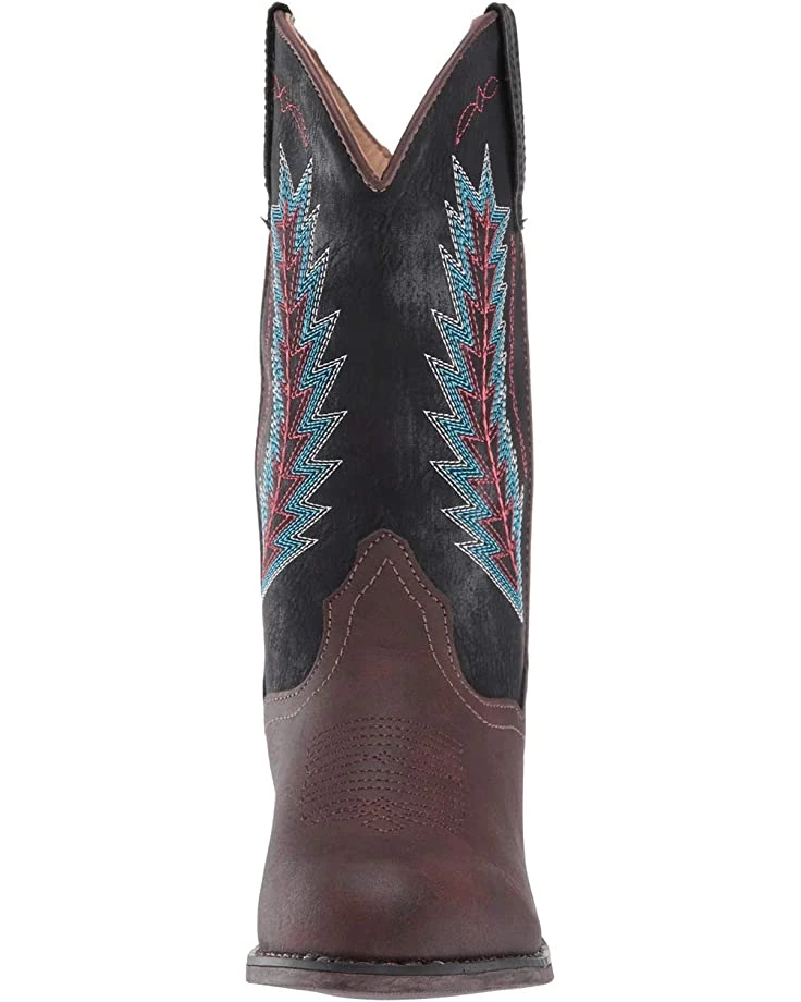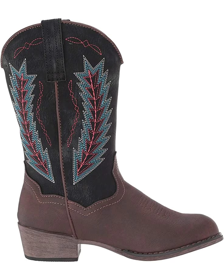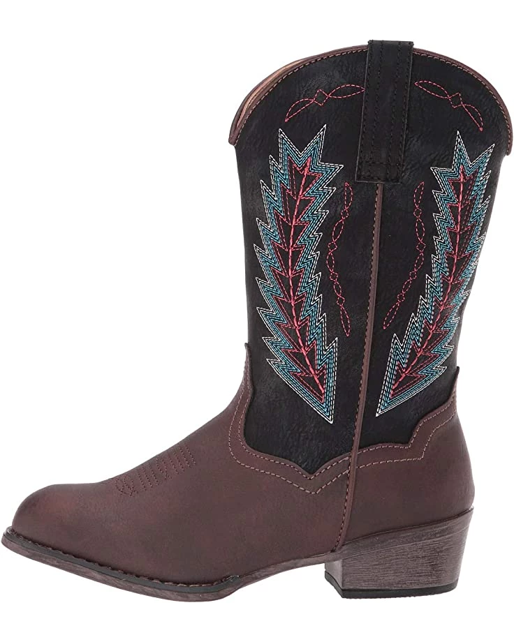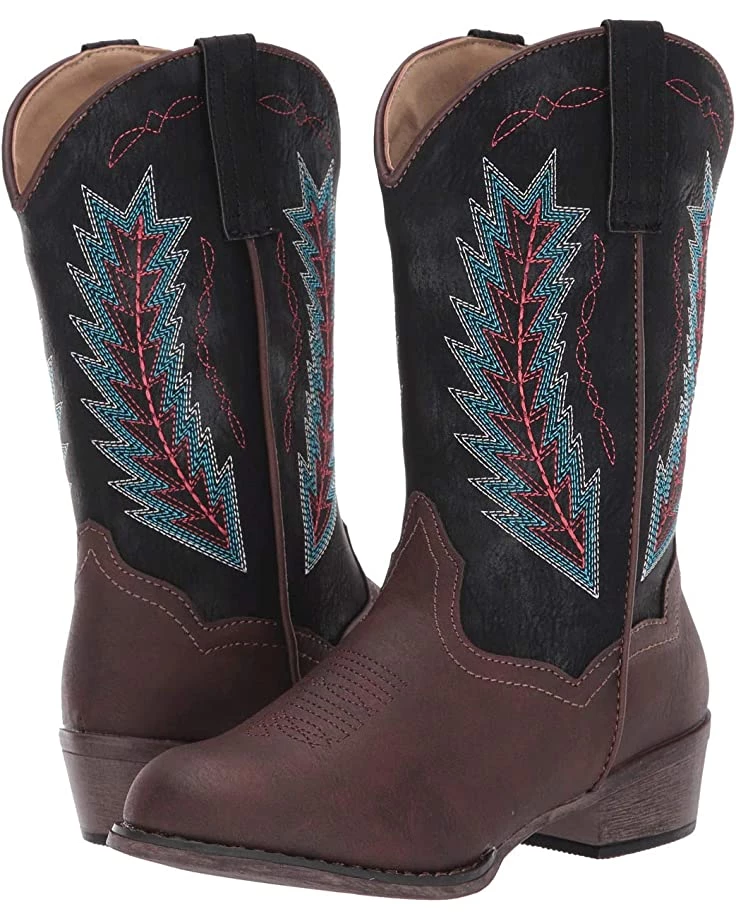 - The eye-catching Roper® Kids Taylor boots are the perfect way to display his southern spirit! Slip-on western boots are designed in a synthetic, color blocked design with Aztec-inspired embroidery along the shaft.