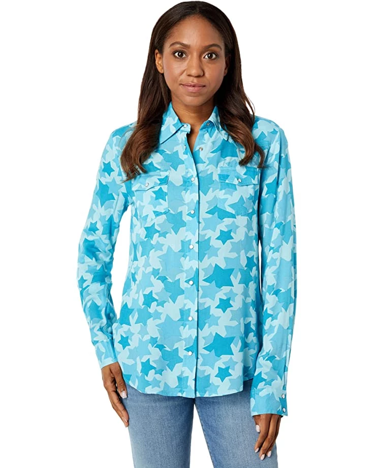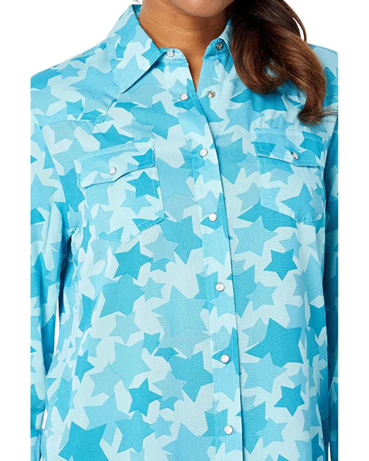 - Classic design meets fresh style with the Roper® Rodeo Star Printed Rayon Western Blouse with Snaps.