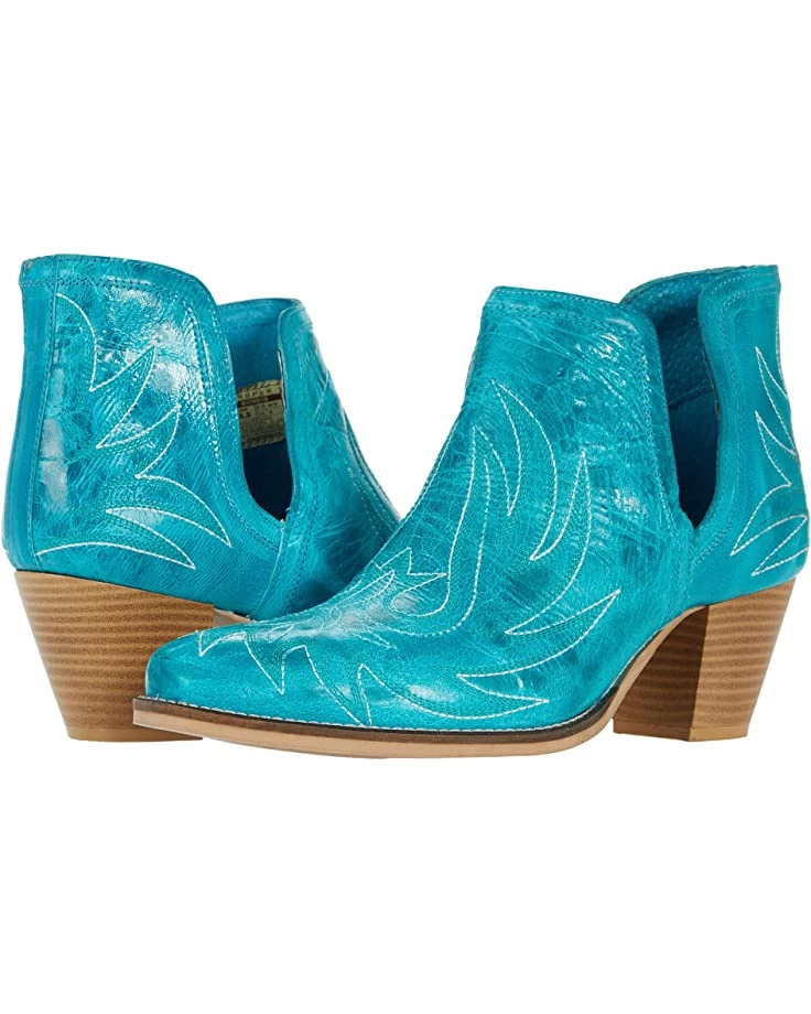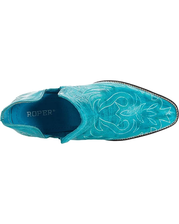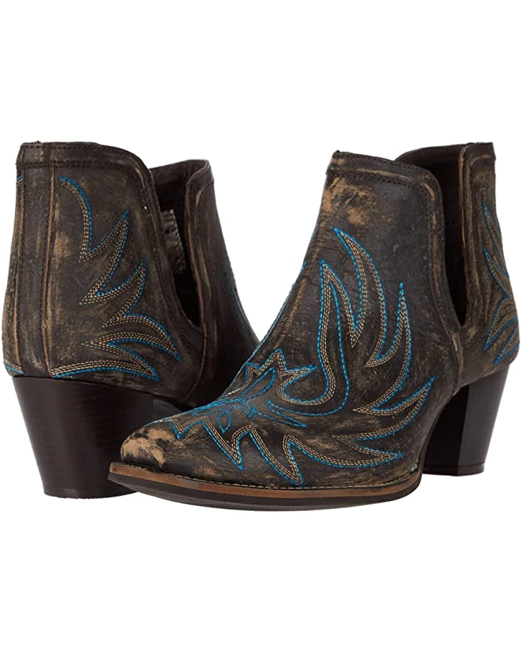 - The Roper® Rowdy ankle cowgirl boots feature a scuffed and scoured leather upper with beautiful multicolored stitching for a gorgeously rugged look that will complement your modern Western style.