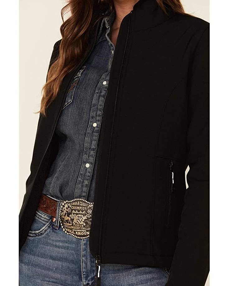 - Take the leather reins in your hand and sport a complete cowgirl look in the Roper® Tech Softshell Jacket.