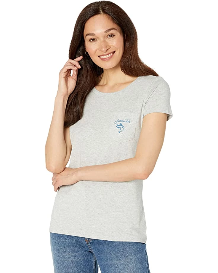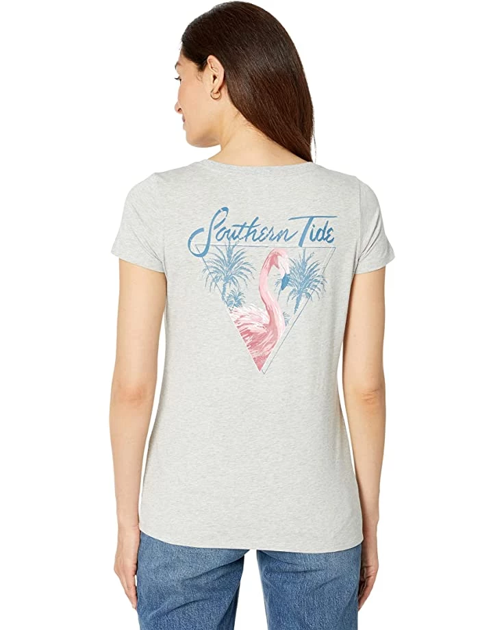 - Spend those casual weekends or vacations in ultimate comfort and relaxation wearing the Southern Tide® Short Sleeve Flamingo Heather Fitted Tee.