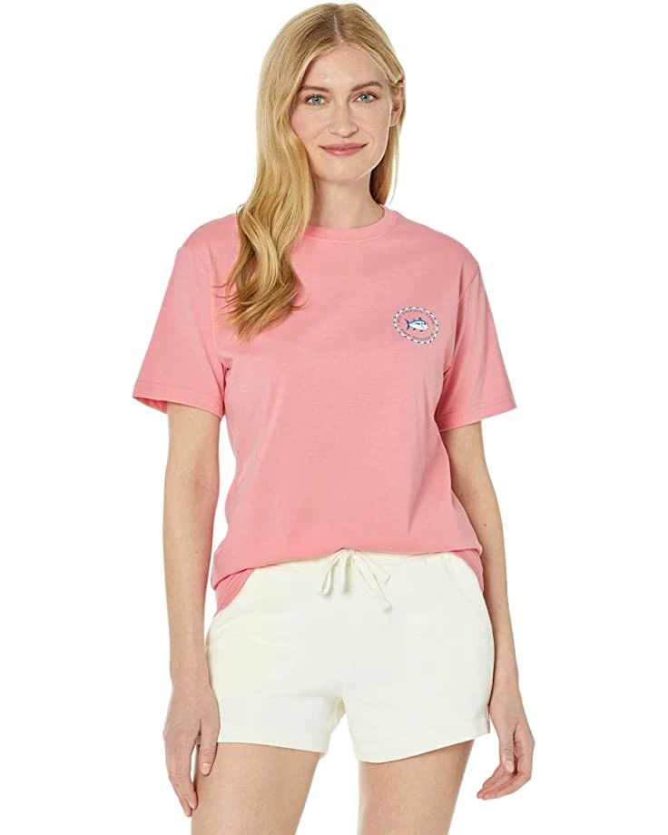 - Keep it chic and fashionable wearing the Southern Tide® Short Sleeve Original Skipjack Medallion Tee.